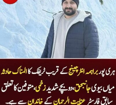 (مانسہرہ_ڈاٹ_کام) موٹروے ایم ون پر براہمہ انٹرچینج کے قریب ایک انتہائی افسوسناک ٹریفک حادثہ پیش آیا، جس کے نتیجے میں میاں بیوی جاں بحق جبکہ ان کے دو کمسن بچے شدید زخمی ہو گئے۔ تفصیلات کے مطابق کھلابٹ سیکٹر 4…