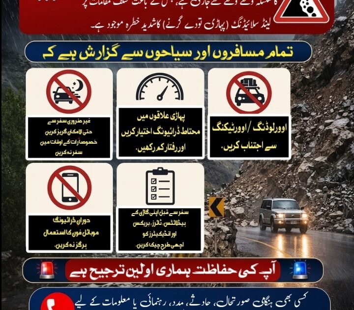 🔸 لینڈ سلائیڈنگ والے علاقوں میں رکنے یا تصاویر بنانے سے گریز کریں۔