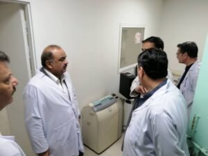 میڈیکل سپرنٹنڈنٹ کنگ عبداللہ ٹیچنگ ہسپتال، ڈاکٹر جواد مجید سواتی نے ریڈیالوجی ڈیپارٹمنٹ کا تفصیلی دورہ کیا۔ اس موقع پر انہوں نے الٹراساؤنڈ، سی ٹی سکین، ایم آر آئی اور ایکسرے مشینوں کا معائنہ کیا اور دستیاب سہولیات کا جائزہ لیا۔