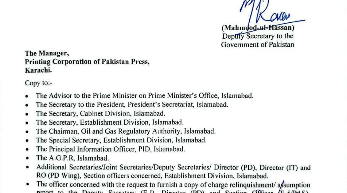 سیکرٹری اسٹیبلشمنٹ نبیل احمد اعوان کو بطور قائم مقام چیئرمین اوگرا اضافی چارج دے دیا گیا