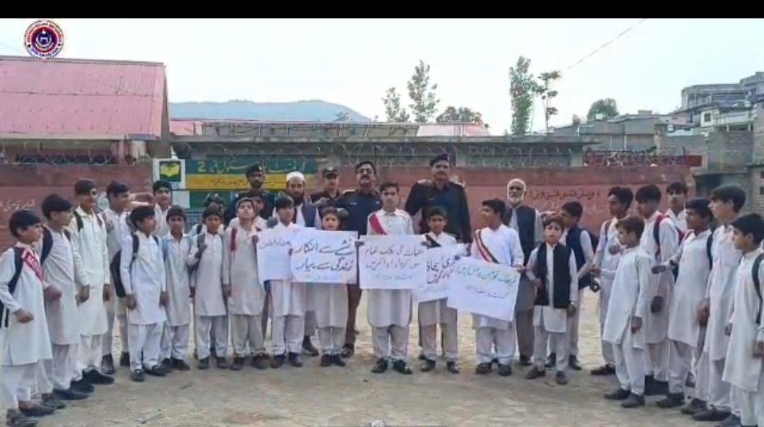🚭 بٹگرام میں منشیات کے خلاف آگاہی مہم: طلبہ، اساتذہ اور پولیس کی بھرپور شرکت 🚭
