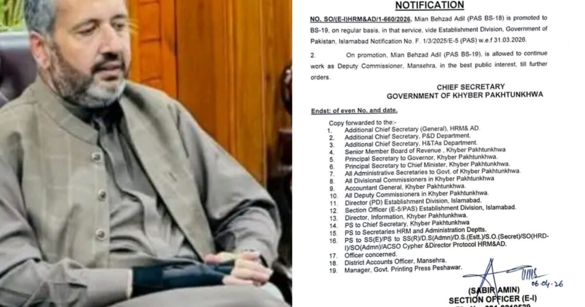 🟩 ڈپٹی کمشنر مانسہرہ میاں بہزاد عادل کو گریڈ 19 میں ترقی.