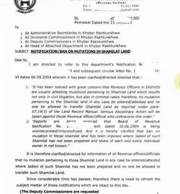 اعلامیے میں واضح کیا گیا ہے کہ اگر کوئی ریونیو افسر یا اہلکار شاملاتی زمین کسی فرد کے نام منتقل کرنے میں ملوث پایا گیا تو اس کے خلاف قانونی اور محکمانہ کارروائی عمل میں لائی جائے گی۔