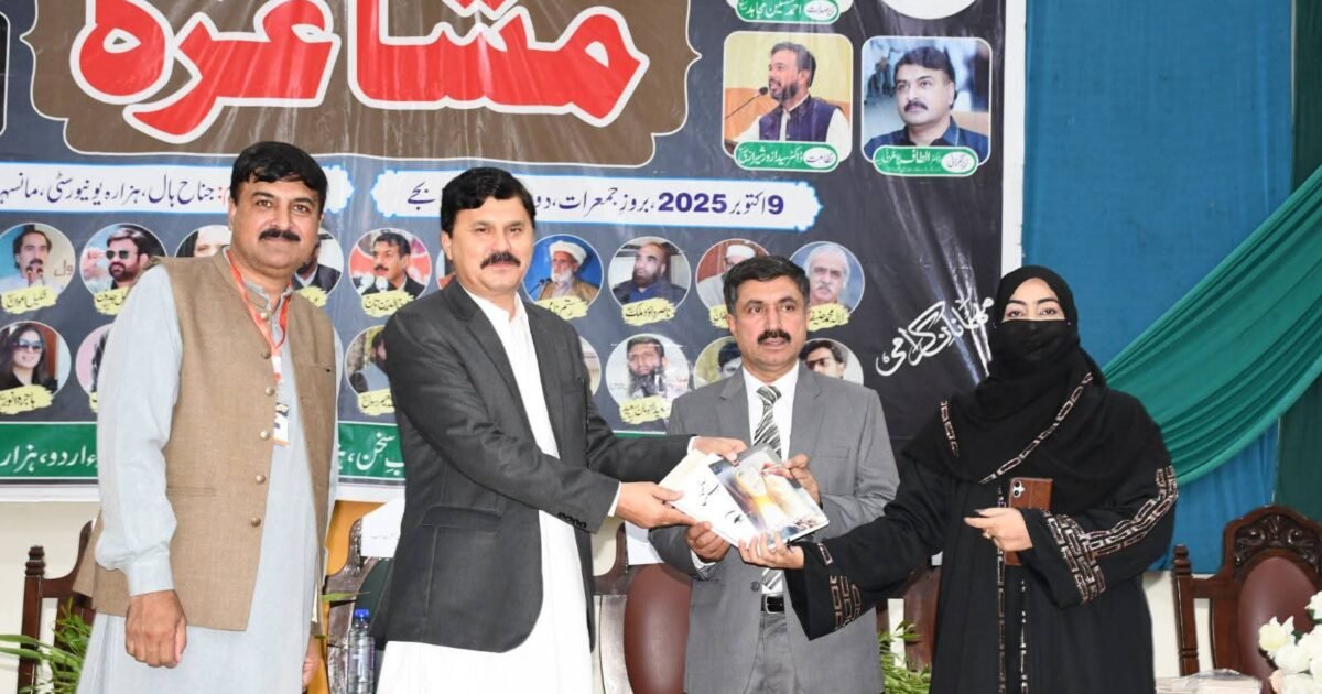 مانسہرہ : شعبہ اردو ہزارہ یونیورسٹی ہزارہ چئیر اور حلقہ ارباب سخن ہزارہ ڈویژن کے اشتراک سے دوسرا آل پاکستان مشاعرہ ہزارہ یونیورسٹی کے جناح ہال میں منعقد ہوا ۔