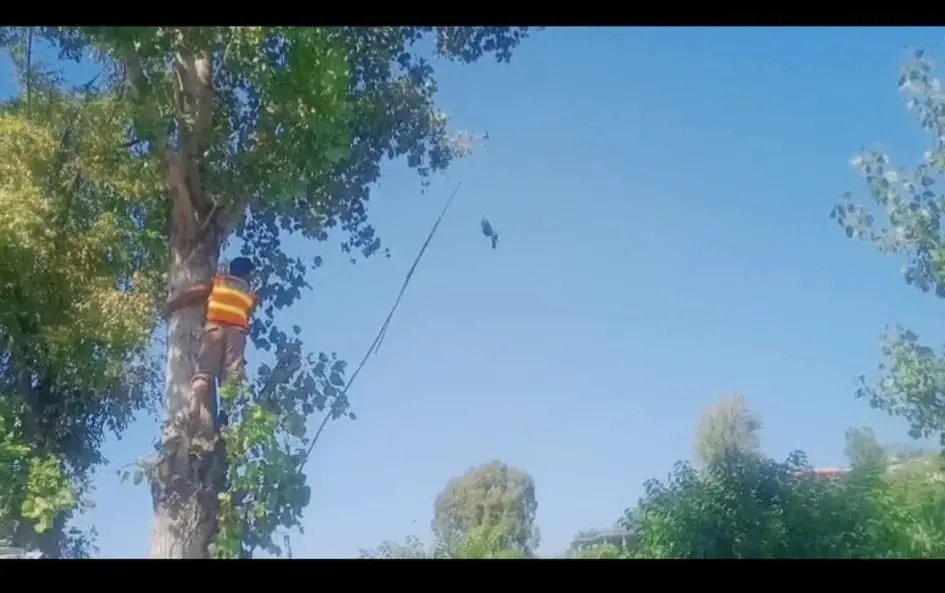 گلوبل فیملی پارک کے قریب ایک اونچے درخت پر کوے کے پھنسنے کی اطلاع۔