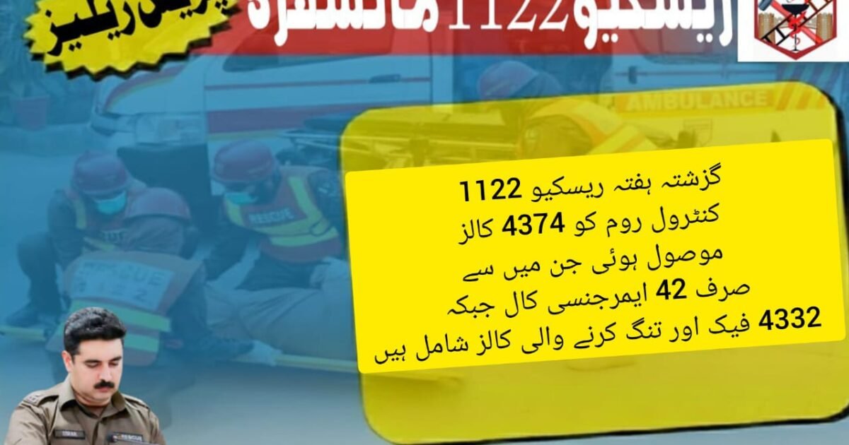 ریسکیو 1122 مانسہرہ کنٹرول روم کو گزشتہ ہفتے (4374) کالز موصول ہوئیں جن میں سے(42) ایمرجنسی کالز تھیں جس کے نتیجے میں(43) متاثرہ افراد کو بروقت ریسکیو کیا گیا.
