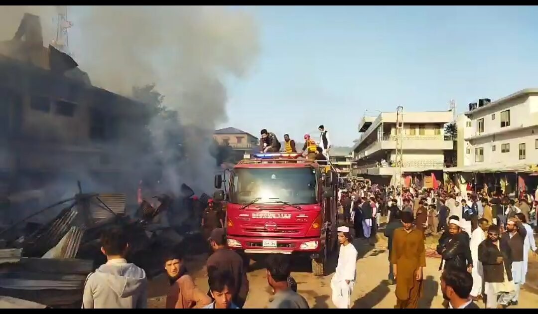 ایبٹ آباد : منڈیاں سمال انڈسٹری کے قریب علی پلازہ کے سامنے لنڈے بازار میں متعدد دوکانوں میں نامعلوم وجوہات کی بنا پر آگ بھڑک اٹھی ۔