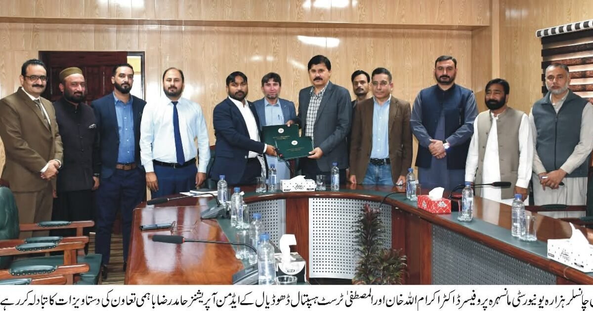 ہزارہ یونیورسٹی مانسہرہ اور فلاحی کاموں، غربت میں کمی اور سماجی بہتری کے لئے کام کرنے والی بین الاقوامی تنظیم المصطفیٰ ٹرسٹ کے درمیان باہمی تعاون کی یادداشت پر دستخط