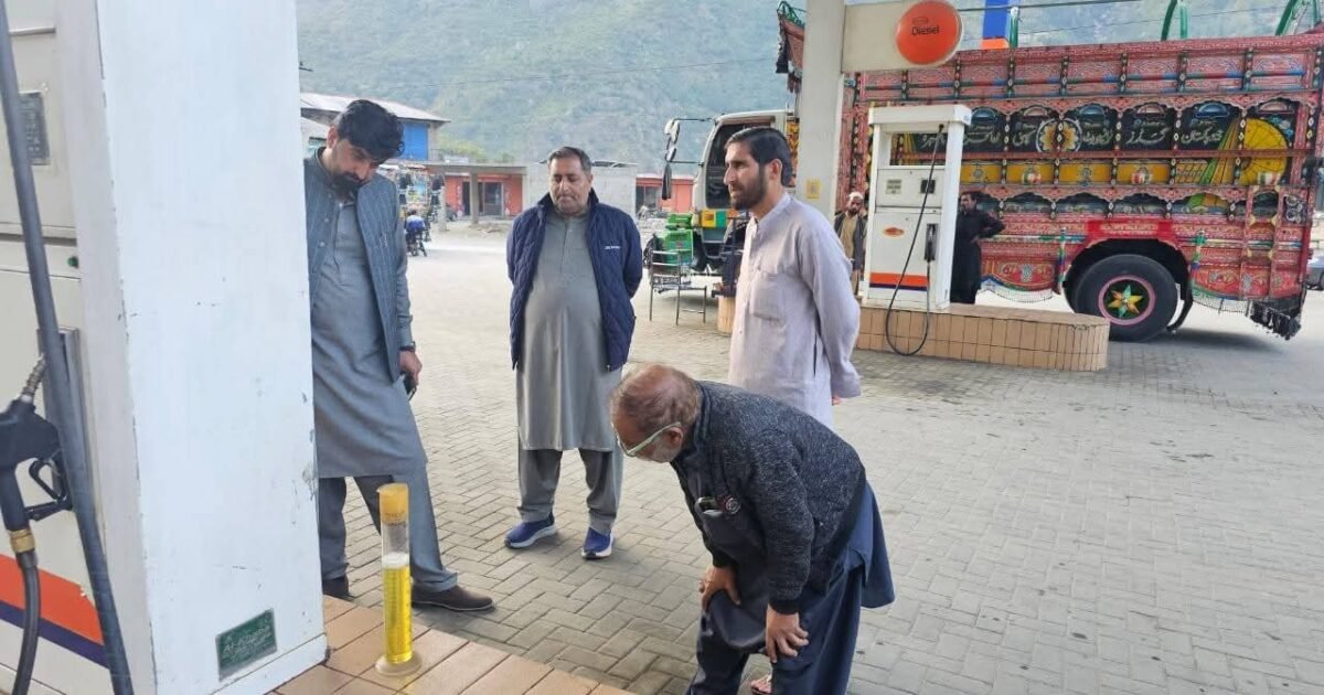 بٹگرام: صوبائی حکومت کی گڈ گورننس پالیسی کے تحت اسسٹنٹ کمشنر شیر دل خان نے اسسٹنٹ کمشنر رضوان برکی کے ہمراہ بٹگرام اور تھاکوٹ بازار میں مختلف پیٹرول پمپس کا معائنہ کیا۔