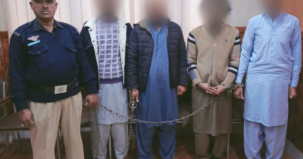گرفتار ملزمان وقاص ولد نزر سکنہ محلہ محبوب آباد ، یاسر ولد احمد سکنہ محلہ عباس خان ، راحیل ولد زمان سکنہ محلہ شیرخان اور سہیل ولد نواز سکنہ حویلیاں کے حویلیاں 5GO کے تحت مقدمہ درج کر لیا گیا ۔