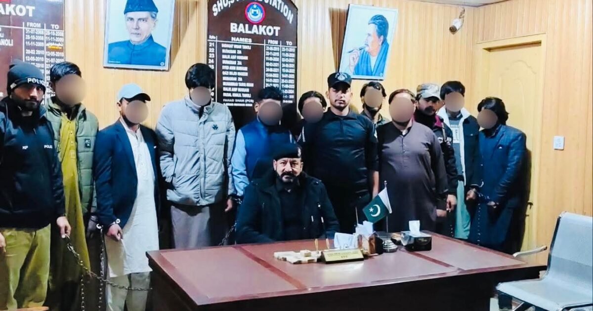 کاروائ کے دوران پولیس نے رقص و سرور کی محفل میں موجود درجنوں افراد کو موقع پر ہی قابو کیا، جو کھلے عام منشیات کا استعمال کر رہے تھے۔ تمام گرفتار افراد کو تھانہ بالاکوٹ منتقل کرکے ان کے خلاف مقدمہ درج کرلیا گیا ہے۔