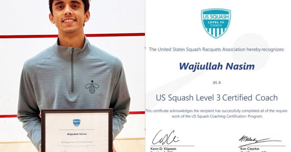 امریکی ادارہ United States Squash Racquets Association نے وجیہہ اللہ نسیم کو US Squash Level 3 Certified Coach کا درجہ دیتے ہوئے تصدیق کی ہے کہ انہوں نے کوچنگ سرٹیفیکیشن پروگرام کے تمام مراحل اور تقاضے کامیابی کے ساتھ مکمل کیے ہیں۔