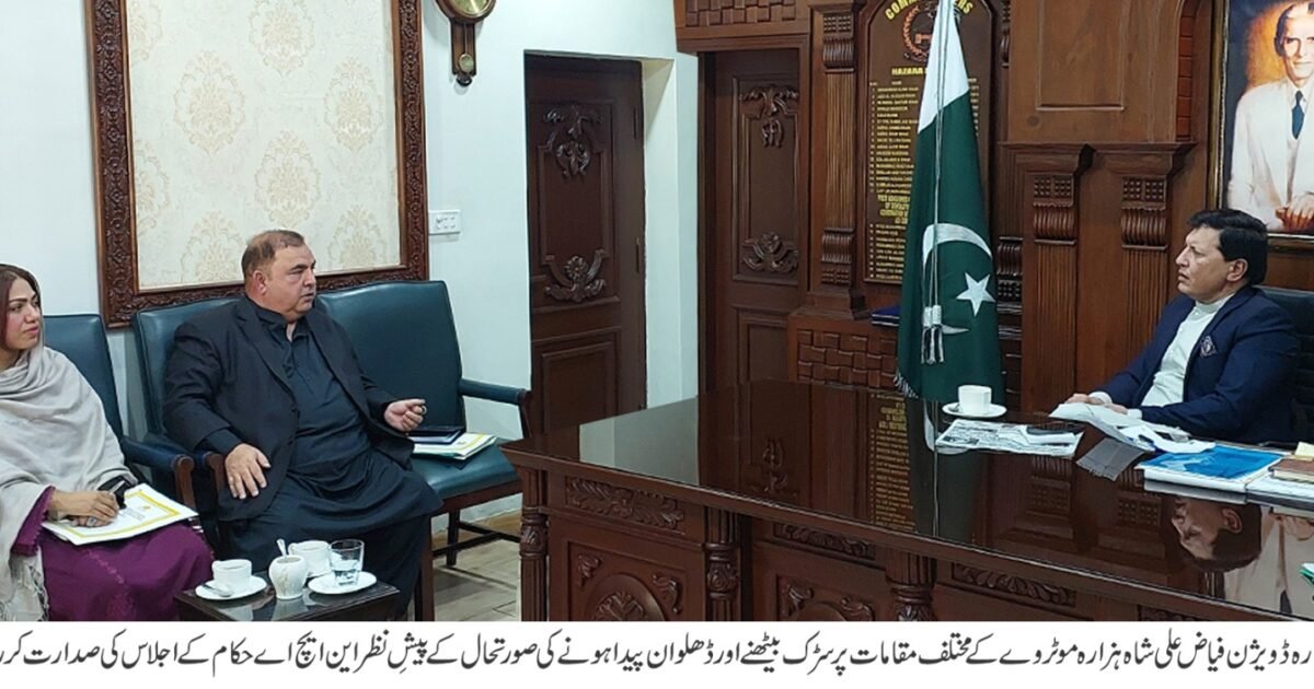 ایبٹ آباد: کمشنر ہزارہ ڈویژن فیاض علی شاہ کی زیرِ صدارت ہونے والے اجلاس میں ہزارہ موٹروے پر سڑک کے بیٹھنے اور اس کے نتیجے میں ڈھلوان پیدا ہونے سے پیدا ہونے والے خطرات پر تفصیلی غور کیا گیا۔ کمشنر نے این ایچ اے حکام کو ہدایت کی کہ عوامی تحفظ کے پیشِ نظر ان مسائل کا فوری اور مؤثر حل یقینی بنایا جائے۔