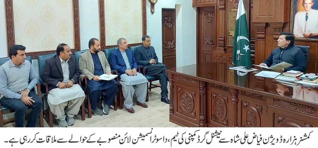 داسو ٹرانسمیشن لائن منصوبے کی پیش رفت اور انتظامی تعاون کے حوالے سے نیشنل گرڈ کمپنی (این جی سی) کے چیف انجینئر/پروجیکٹ ڈائریکٹر اور ان کی ٹیم نے کمشنر ہزارہ ڈویژن فیاض علی شاہ سے ملاقات کی۔