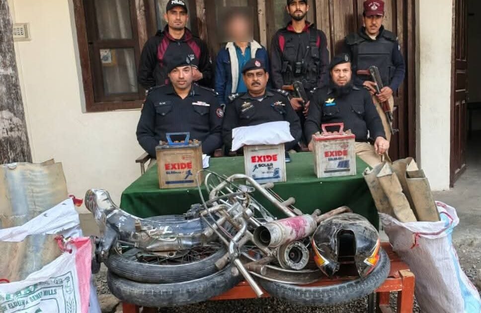 لوئر کوہستان: ایس ایچ او پٹن ثناء اللہ خان ہمراہ پولیس ٹیم کارروائی کرتے ہوئے ملزم اعتزاز ولد گل داد کو گرفتار کرکے اس کے قبضے سے موٹر سائیکل کے پارٹس، ٹائرز ، بیٹریاں اور دیگر مسروقہ سامان معہ 540 گرام چرس برآمد کی۔