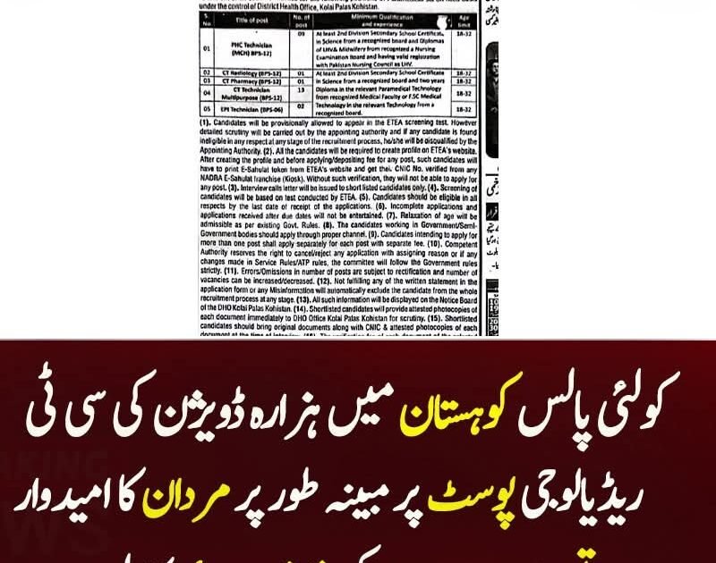 نوکری کے اشتہار میں یہ پوسٹ واضح طور پر ضلع کولئی پالس اور ہزارہ ڈویژن کے مقامی امیدواروں کے لیے رکھی گئی تھی۔ زرائع کے مطابق ہزارہ ڈویژن سے صرف ایک امیدوار محمد حنیف ولد گلزار نے اس پوسٹ کے لیے کوالئیفائی کیا تھا مگر ڈسٹرکٹ ہیلتھ آفیسر کولئی پالس نے اپنے جاری کردہ اشتہار کی خلاف ورزی کرتے ہوئے کوالیفائی کرنے والے امیدوار کو نظر انداز کرتے ہوئے مبینہ طور پر مردان کے رہائشی آفتاب احمد کا آرڈر کر دیا ہے،متاثرہ امیدوار کے مطابق ڈسٹرکٹ ہیلتھ آفیسر نے آرڈر کی کاپی بھی فراہم کرنے سے انکار کر دیا اور دیگر چھبیس آرڈرز بھی خفیہ رکھے ہوئے ہیں.