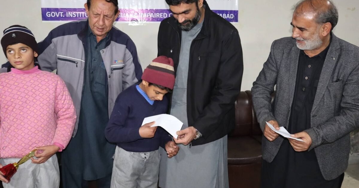 ایبٹ آباد: ایبٹ آباد میں سوشل ویلفیئر ڈیپارٹمنٹ کے زیر انتظام بصارت سے محروم بچوں کے سالانہ امتحانات میں نمایاں کارکردگی دکھانے والے طلباء کے لیے تقسیمِ انعامات اور عالمی یومِ معذوراں کی مناسبت سے ایک پروقار تقریب کا انعقاد کیا گیا۔