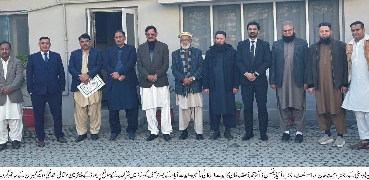 مانسہرہ : ہزارہ یونیورسٹی کے رجسٹرار محبت خان اور اسسٹنٹ رجسٹررا اکیڈیمکس ڈاکٹر محمد آصف خان نے یونیورسٹی کے ساتھ الحاق شدہ ایبٹ لاء کالج مانسہرہ اور ایبٹ آباد کے بورڈ آف گورنرز میں شرکت کی۔