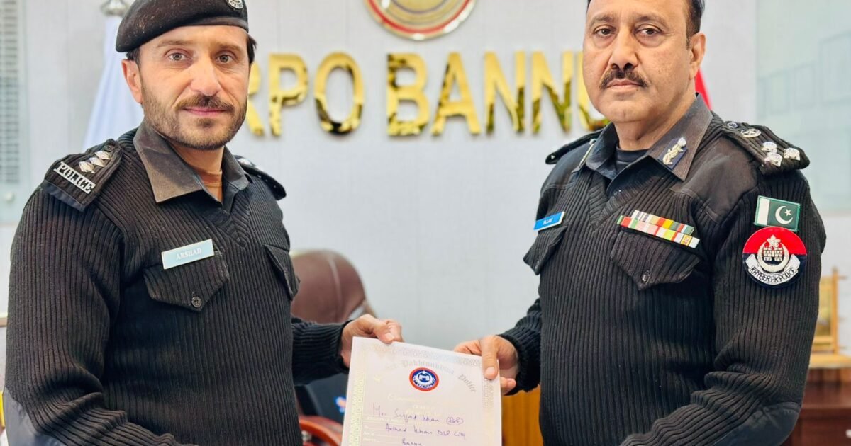 بنوں:ڈپٹی انسپکٹر جنرل پولیس بنوں ریجن سجاد خان نے پولیس افسران و جوانوں کی غیر معمولی کارکردگی، پیشہ ورانہ صلاحیتوں اور فرض شناسی کو خراجِ تحسین پیش کرتے ہوئے ایک پروقار تقریب کے دوران تعریفی اسناد اور نقد انعامات تقسیم کیے۔