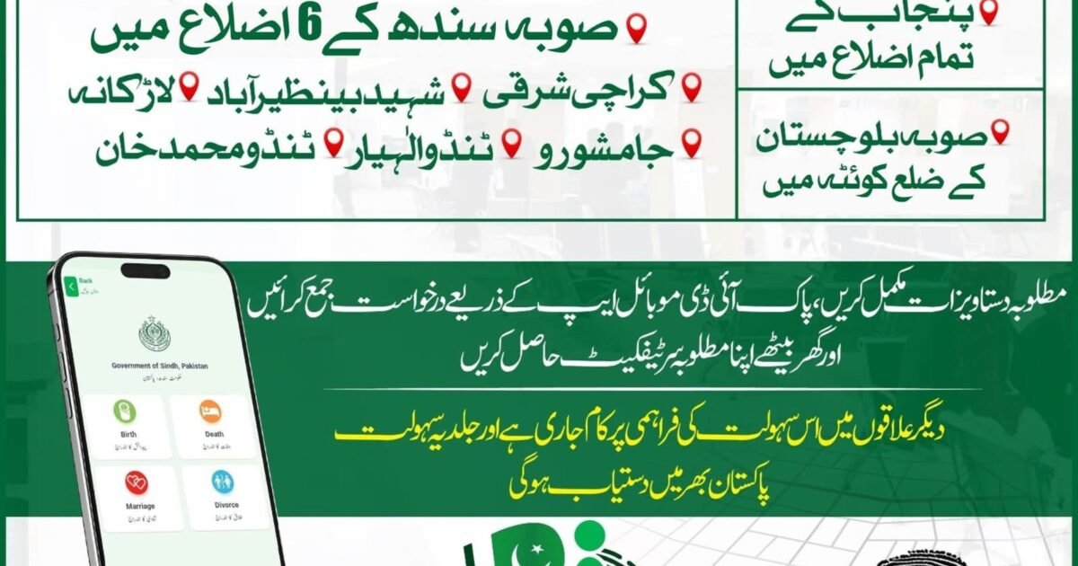 مطلوبہ دستاویزات مکمل کریں، پاک آئی ڈی موبائل ایپ کے ذریعے درخواست جمع کرائیں اور گھر بیٹھے اپنا مطلوبہ سرٹیفکیٹ حاصل کریں۔