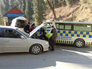 اسی طرح ٹریفک پولیس کی موبائل ورکشاپ کا عملہ بھی گلیات کے مختلف علاقوں میں موجود ہے جو سیاحوں کی گاڑیوں میں پیش آنے والی فنی خرابیوں کو فوری طور پر درست کر رہا ہے، تاکہ کسی بھی مسافر کو غیر ضروری پریشانی کا سامنا نہ کرنا پڑے۔