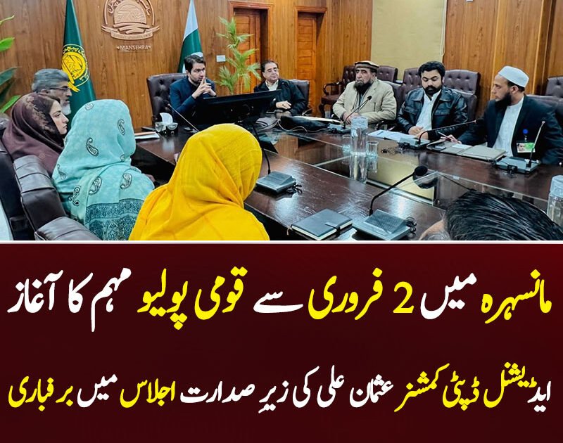 ایڈیشنل ڈپٹی کمشنر مانسہرہ، عثمان علی کی صدارت میں قومی پولیو مہم فروری 2026 کی تیاریوں کے لیے ایک اہم جائزہ اجلاس ہوا۔ اس میں مہم کو کامیاب بنانے کے لیے تمام متعلقہ اداروں کے افسران نے شرکت کی۔