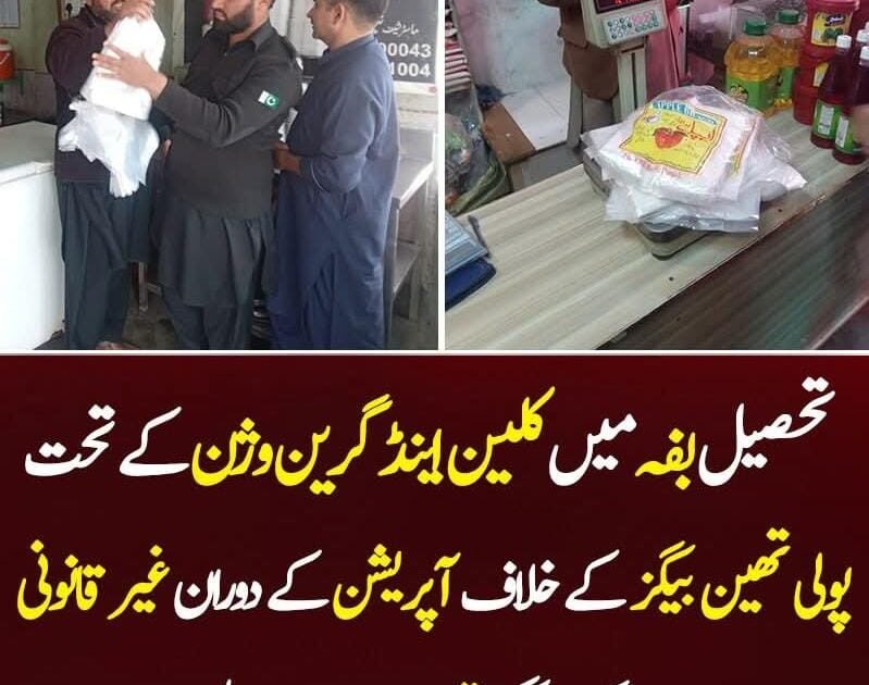 مانسہرہ کے تحصیل بفہ کے مرکزی بازاروں میں “کلین اینڈ گرین” وژن کے تحت پولی تھین بیگز کے خلاف بھرپور کارروائی کی گئی۔ اس آپریشن کی نگرانی تحصیل میونسپل آفیسر (ٹی ایم او) بفہ نے کی، جبکہ انکروچمنٹ انسپکٹر محمد وسیم نے مختلف دکانوں اور مارکیٹوں کا تفصیلی معائنہ کیا۔