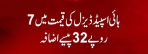اسی طرح ہائی اسپیڈ ڈیزل (HSD) کی قیمت میں 7 روپے 32 پیسے فی لیٹر اضافہ کیا گیا ہے۔ نئی قیمتوں کا اطلاق فوری طور پر کر دیا گیا ہے۔