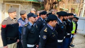 ڈی پی او مانسہرہ محمد اظہر خان کی زیرِ صدارت ٹریفک اسٹاف کی رول کال اور بریفنگ.