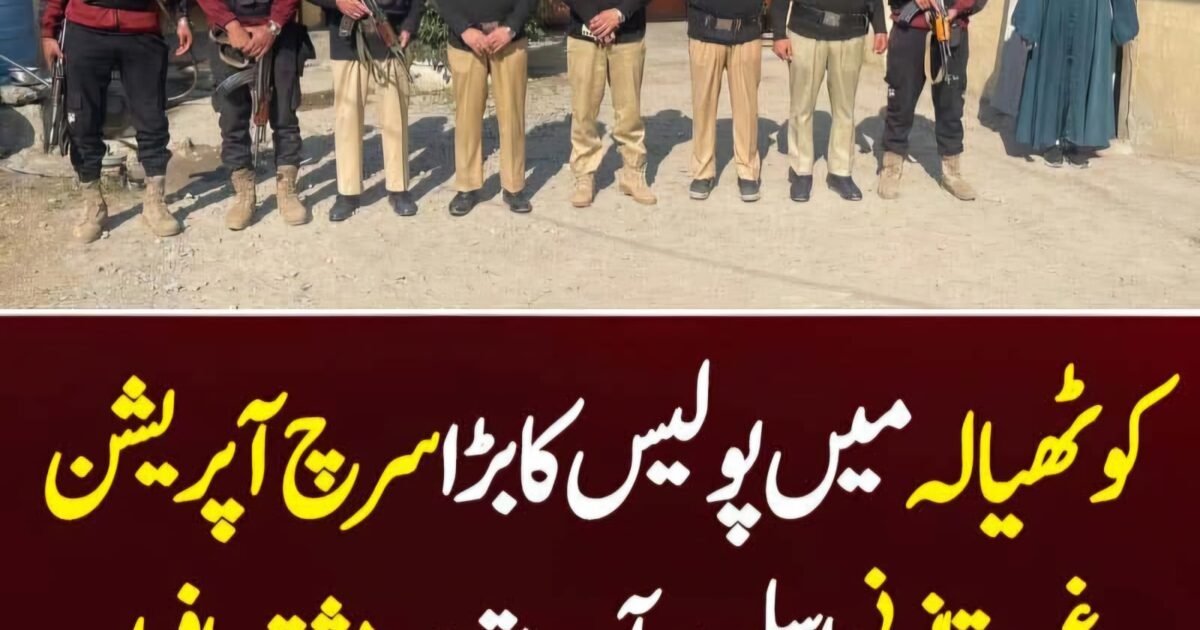 ڈی پی او ایبٹ آباد، ہارون رشید خان کی خصوصی ہدایات کے مطابق، ایس ایچ او تھانہ کوٹھیالہ کیڈٹ گل رحمن قریشی نے اپنی نفری کے ہمراہ تھانے کی حدود میں مختلف حساس مقامات پر سرچ اینڈ سٹرائیک آپریشن کیا۔ اس دوران پولیس نے پیشہ ورانہ مہارت اور مکمل منصوبہ بندی کے تحت علاقے میں چھاپے مارے، جس میں مشکوک سرگرمیوں میں ملوث افراد کی نشاندہی اور گرفتاری عمل میں لائی گئی۔