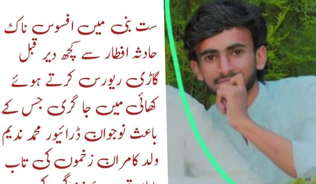 ذرائع کے مطابق، افطاری سے کچھ دیر قبل ست بنی کا رہائشی نوجوان ندیم ولد کامران اپنی گاڑی گھر کے گیراج میں پارک کر رہا تھا کہ اسی دوران گاڑی ریورس کرتے ہوئے بے قابو ہو گئی اور قریب واقع گہری کھائی میں جا گری۔ حادثہ انتہائی اچانک پیش آیا جس کے نتیجے میں نوجوان ندیم موقع پر ہی دم توڑ گیا۔