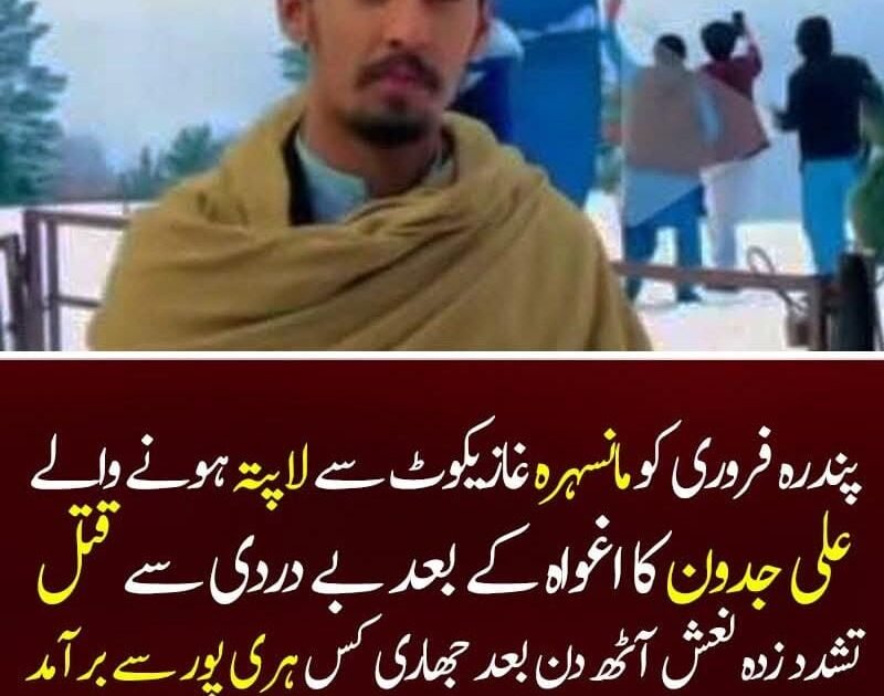 مانسہرہ کے نواحی علاقے غازیکوٹ سے 15 فروری کو پُراسرار طور پر لاپتہ ہونے والے نوجوان کی لاش برآمد کر لی گئی۔ مقتول کی شناخت علی جدون کے نام سے ہوئی ہے، جو نثار خان جدون کے بیٹے اور وقاص جدون و فیضان جدون کے بھائی تھے۔