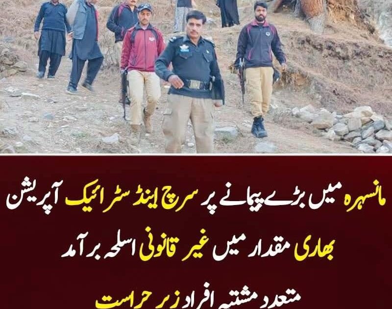 مانسہرہ میں حالیہ سیکیورٹی صورتحال کے پیشِ نظر امن و امان کے قیام اور جرائم پیشہ عناصر کے خلاف مؤثر کارروائی کے لیے ڈسٹرکٹ پولیس آفیسر (ڈی پی او) مانسہرہ محمد اظہر خان کے خصوصی احکامات پر ضلع بھر میں بھرپور “سرچ اینڈ سٹرائیک آپریشنز” کیے گئے۔ ان آپریشنز کا مقصد جرائم کا سدباب، غیر قانونی اسلحہ کی روک تھام اور مشتبہ سرگرمیوں میں ملوث عناصر کے گرد گھیرا تنگ کرنا تھا۔