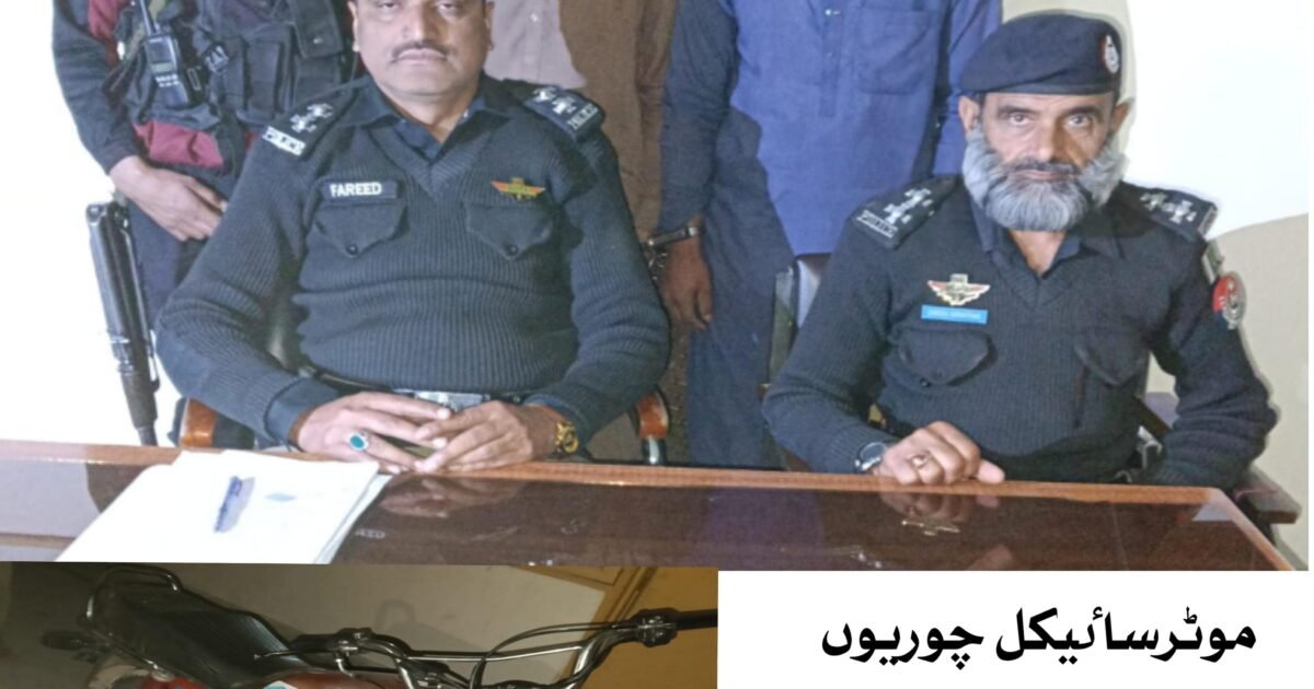 ایس ایچ او سٹی فرید خان نے پولیس نفری کے ہمراہ کارروائی کرتے ہوئے ملزمان تیمور، سکنہ چھم ارغشوڑی، اور عطاء اللہ، سکنہ کوہانی کس، کو حراست میں لیا۔ گرفتار ملزمان کے قبضے سے چوری شدہ موٹرسائیکل بھی برآمد کر لی گئی ہے۔