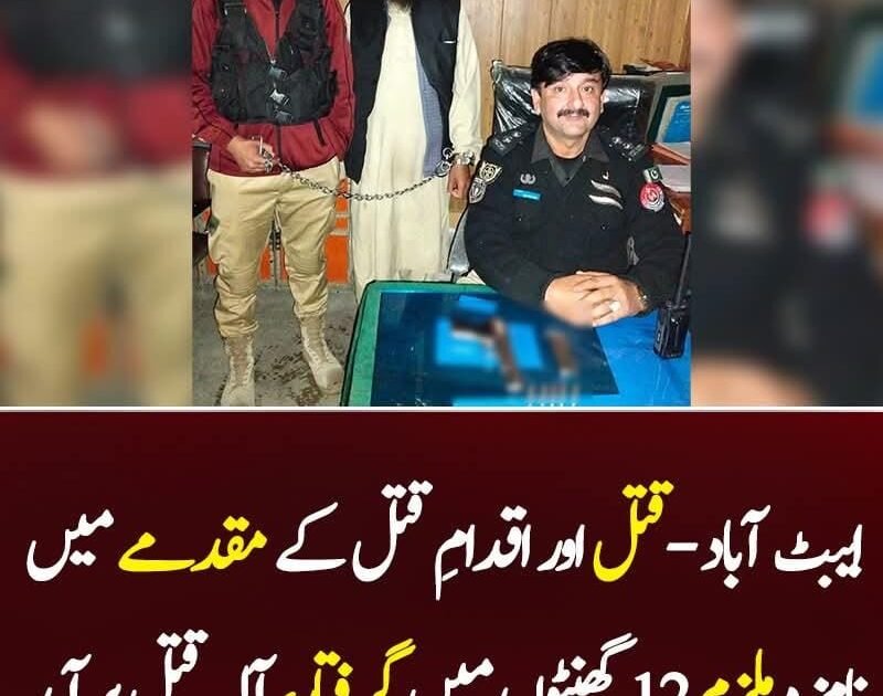 ایبٹ آباد پولیس نے قتل اور اقدامِ قتل کے مقدمے میں مطلوب نامزد ملزم کو صرف 12 گھنٹوں کے اندر گرفتار کر لیا۔