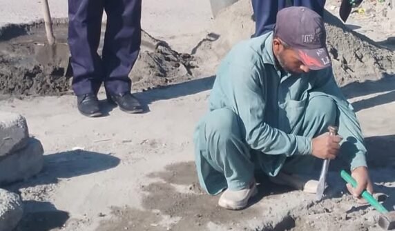 چھپر روڈ پر نالوں کی پختگی کے دوران ٹھیکہ دار کی جانب سے غیر میعاری میٹریل کا استعمال