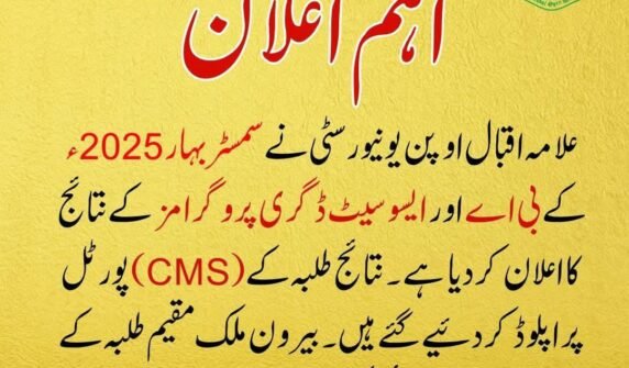 علانِ نتائج — علامہ اقبال اوپن یونیورسٹی (AIOU)