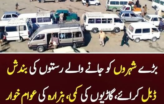 بڑے شہروں کے راستے بند، ڈبل کرایوں اور ٹرانسپورٹ کی قلت سے ہزارہ کے عوام شدید پریشان.