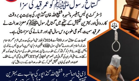 گستاخ رسول ﷺ کو عمر قید کی سزا