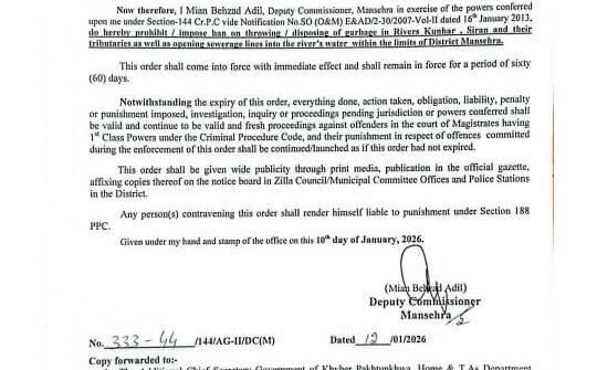 ڈپٹی کمشنر مانسہرہ میاں بہزاد عادل کی خصوصی ہدایت