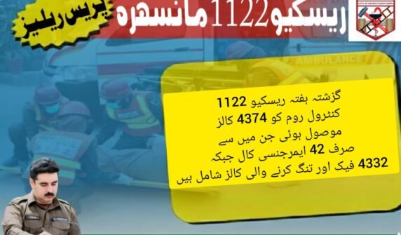ریسکیو 1122 مانسہرہ کی ہفتہ وار کارکردگی رپورٹ