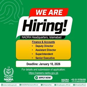 نادرا (NADRA) فنانس اینڈ اکاؤنٹس ڈیپارٹمنٹ میں آسامیوں