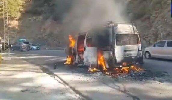 سیاح فیملی کی گاڑی دورانِ سفر اچانک آگ کی لپیٹ میں
